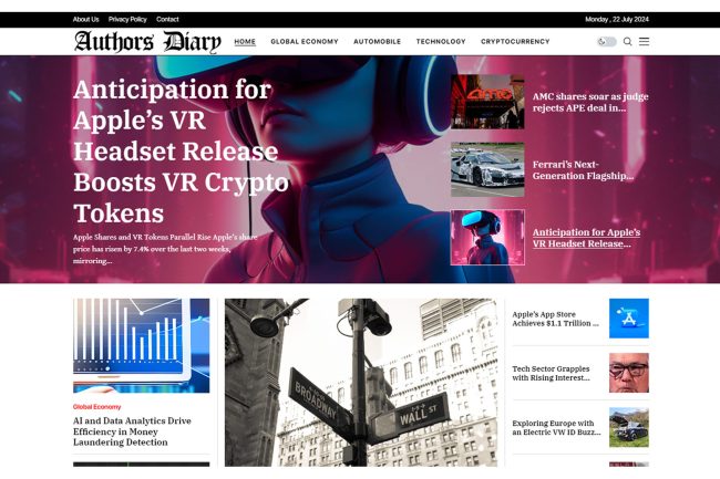 Bayaslan Dijital olarak, Authorsdiary web sitesini tasarladık ve geliştirdik. Bu projede, küresel ekonomi, otomobil, teknoloji ve kripto para gibi çeşitli konularda haberler ve makaleler sunan bir platform oluşturduk. Site, sektördeki en son gelişmeleri ve trendleri kapsayan içerikler sağlayarak, kullanıcıların finansal analizler, teknoloji yenilikleri ve sektörel haberler gibi geniş bir yelpazede bilgiye ulaşmalarını sağlamaktadır. Bu proje, dijital çözümlerimizle haber ve medya sektörüne olan katkımızı göstermektedir.