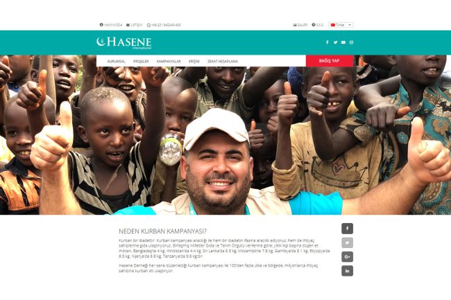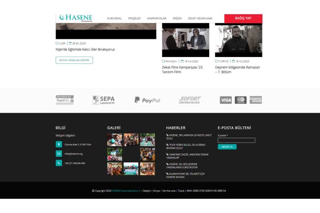 Bayaslan Dijital olarak, Hasene International web sitesini tasarladık ve geliştirdik. Bu projede, küresel çapta insani yardım projeleri yürüten derneğin kurban, su kuyusu, yetim sponsorluğu, eğitim ve sağlık gibi çeşitli yardım projelerini tanıtan kullanıcı dostu bir platform oluşturduk. Site, bağış kampanyaları, acil yardım çağrıları ve derneğin gerçekleştirdiği sosyal sorumluluk faaliyetleri hakkında detaylı bilgiler sunmaktadır. Bu proje, dijital çözümlerimizle insani yardım ve sosyal sorumluluk alanlarına olan katkımızı göstermektedir.