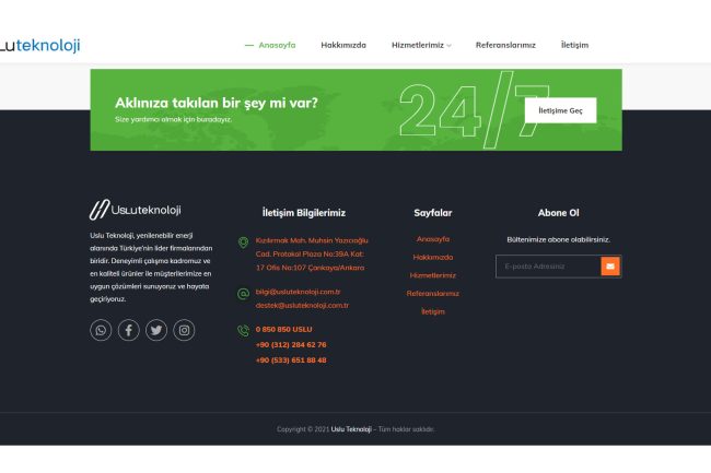 Bayaslan Dijital olarak, Uslu Teknoloji web sitesini tasarladık ve geliştirdik. Bu projede, yenilenebilir enerji alanında hizmet veren firmanın güneş enerjisi sistemleri (GES), rüzgar enerjisi sistemleri (RES) ve biyokütle projelerini tanıtan kullanıcı dostu bir platform oluşturduk. Site, firmanın projeleri, danışmanlık hizmetleri ve müşteri referansları hakkında detaylı bilgiler sunmaktadır. Bu proje, dijital çözümlerimizle enerji sektörüne olan katkımızı göstermektedir.